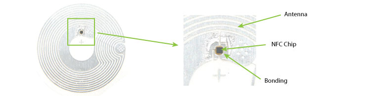 On a normal NFC sticker or inlay, the bond will be protected by the substrate or plastic that the antenna and chip is attached to. On inlays, this might be a single sheet and on labels/stickers, this will likely to be two layers of plastic. These layers aim to stop movement on the bond which might cause a break.
