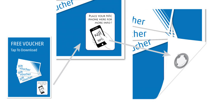 If you are adding an NFC tag, you print your posters as normal and add some artwork to the front to show users and encourage users to interact with their phone. Then you buy some NFC tags from Seritag either encoded or blank so you can encode them yourself.